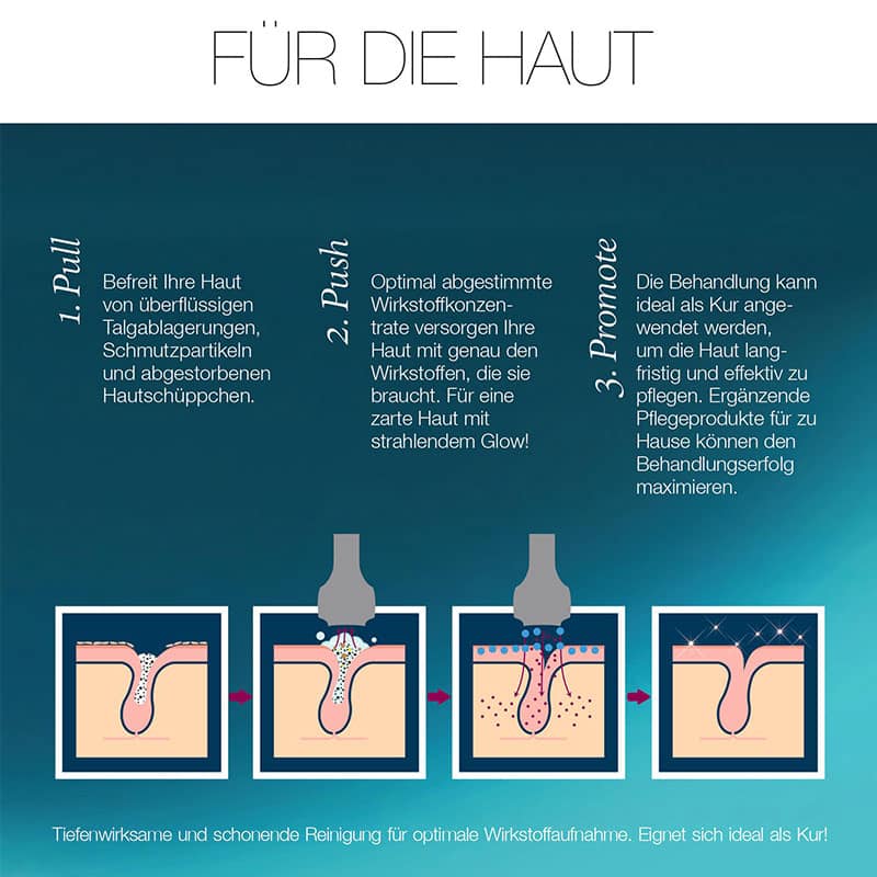 - Wirkstoffeinschleusung: Speziell abgestimmte Wirkstoffe werden tief im die Haut eingeschleust.